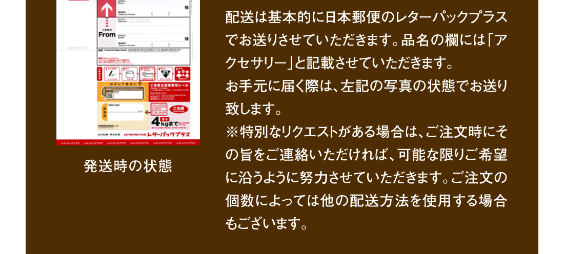 プライバシー保護をしっかり考えて発送いたします。誰にもバレない!徹底した配慮をお約束いたします。