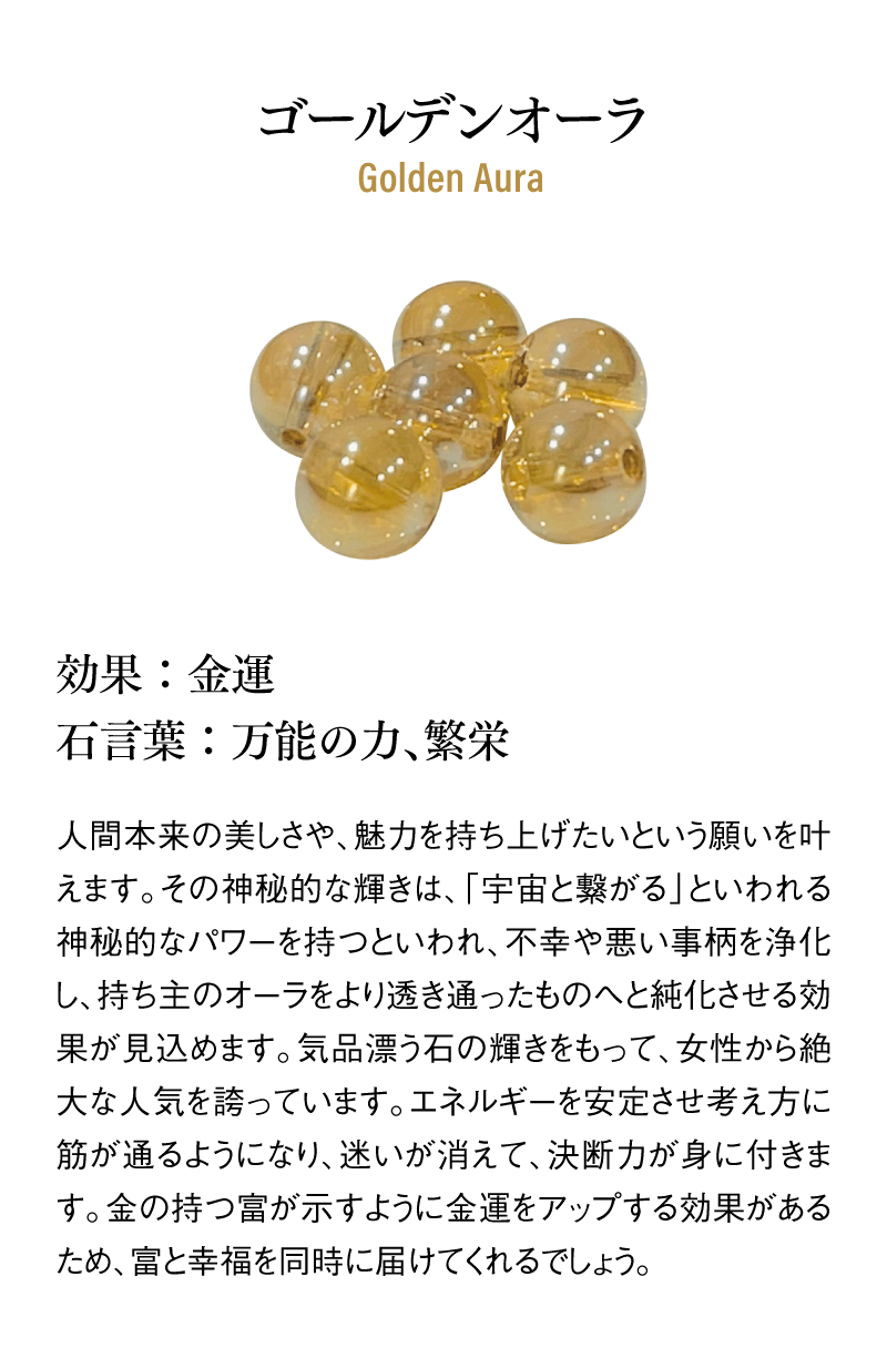『洗練された輝きをあなたに』 きらびやかで華やかな印象のゴールドモデル。ゴールドオーラを贅沢に3個も使用し、日々頑張る女性にさらなる輝きを与えるデザインに。身に着けるだけで、一段上の女性へと早変わり!