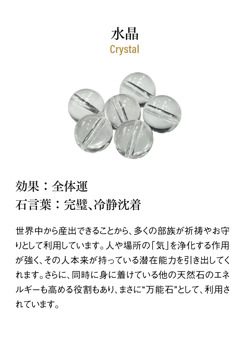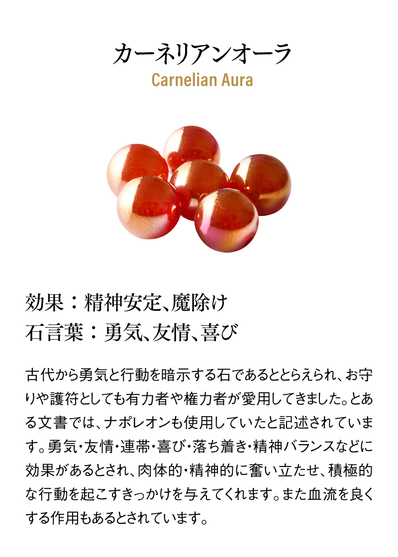 『女性の美しさを引き出す』 水晶をベースに落ち着いた雰囲気のクリアモデル。シンプルな中にも、ピンクのカーネリアンオーラをまとわせることで、シーンを選ばず、どんな服装に合わやすいデザインに。女性が持つ本来の美しさを、一気に引き出します!